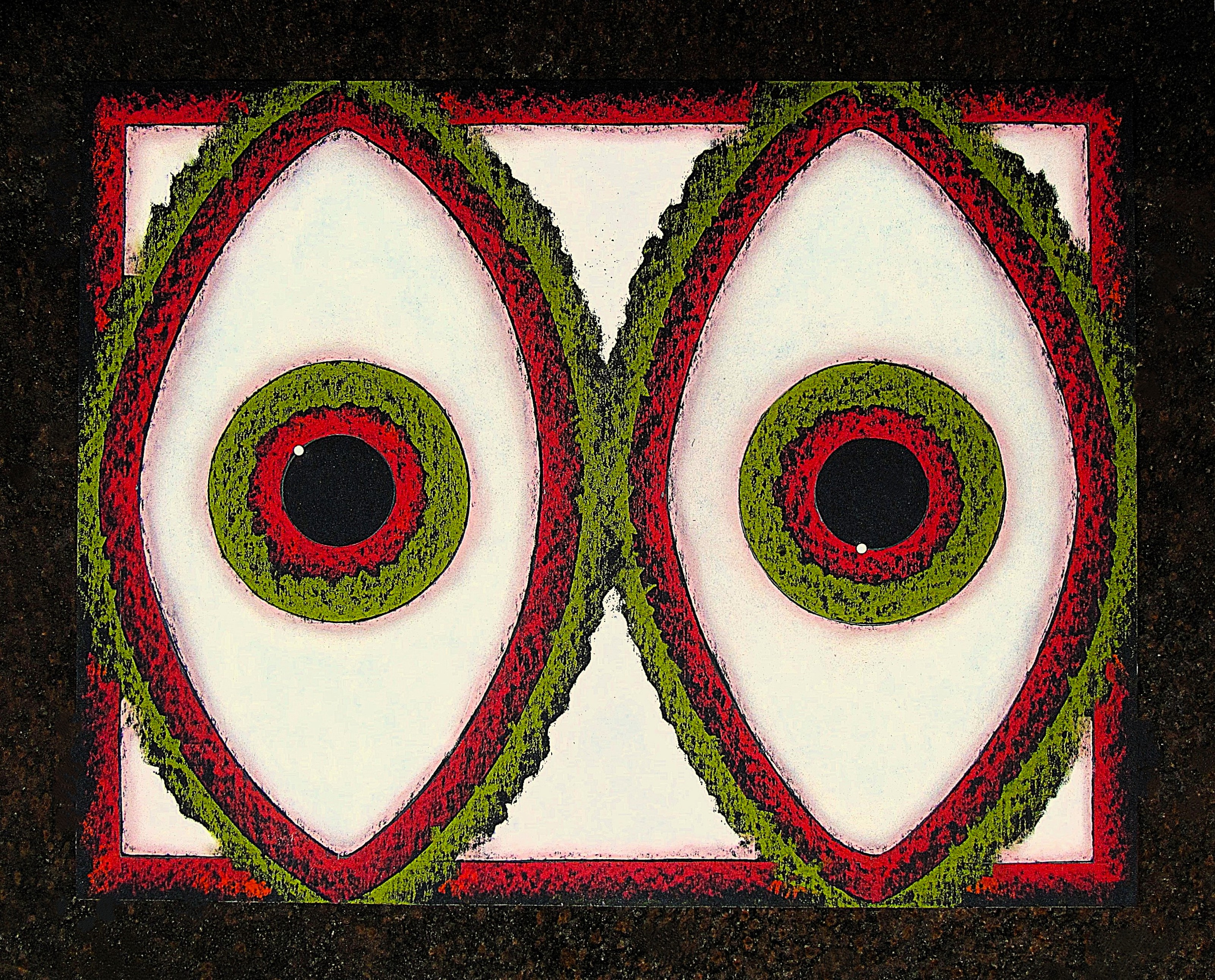 Smudge Alien Portrait with Shoulder Eyes (22 x 28, glue and pastel on black illustration board) | ||