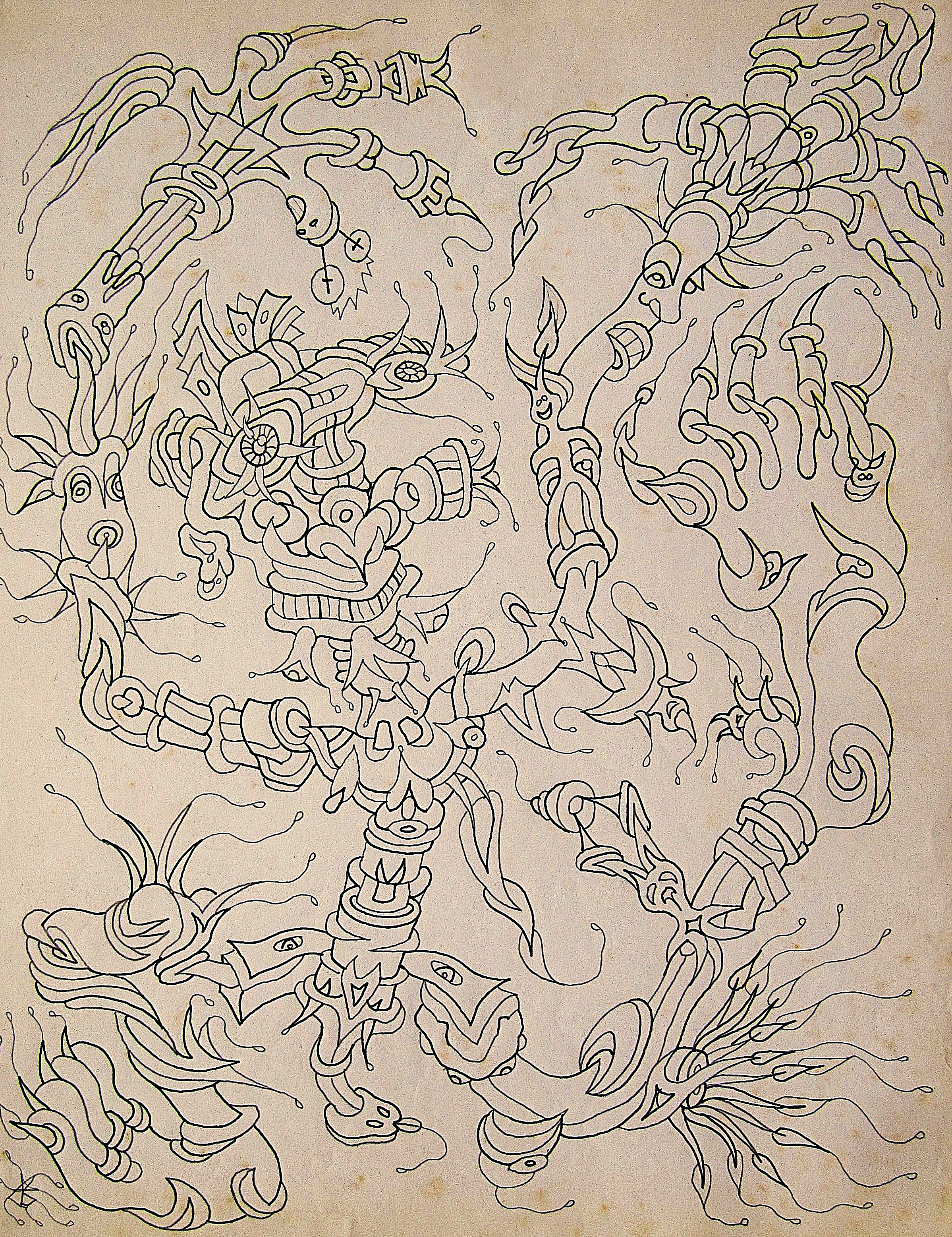 Half and Half Doodle Dude (14 x 17, alternating ink and pencil on white paper) | ||
