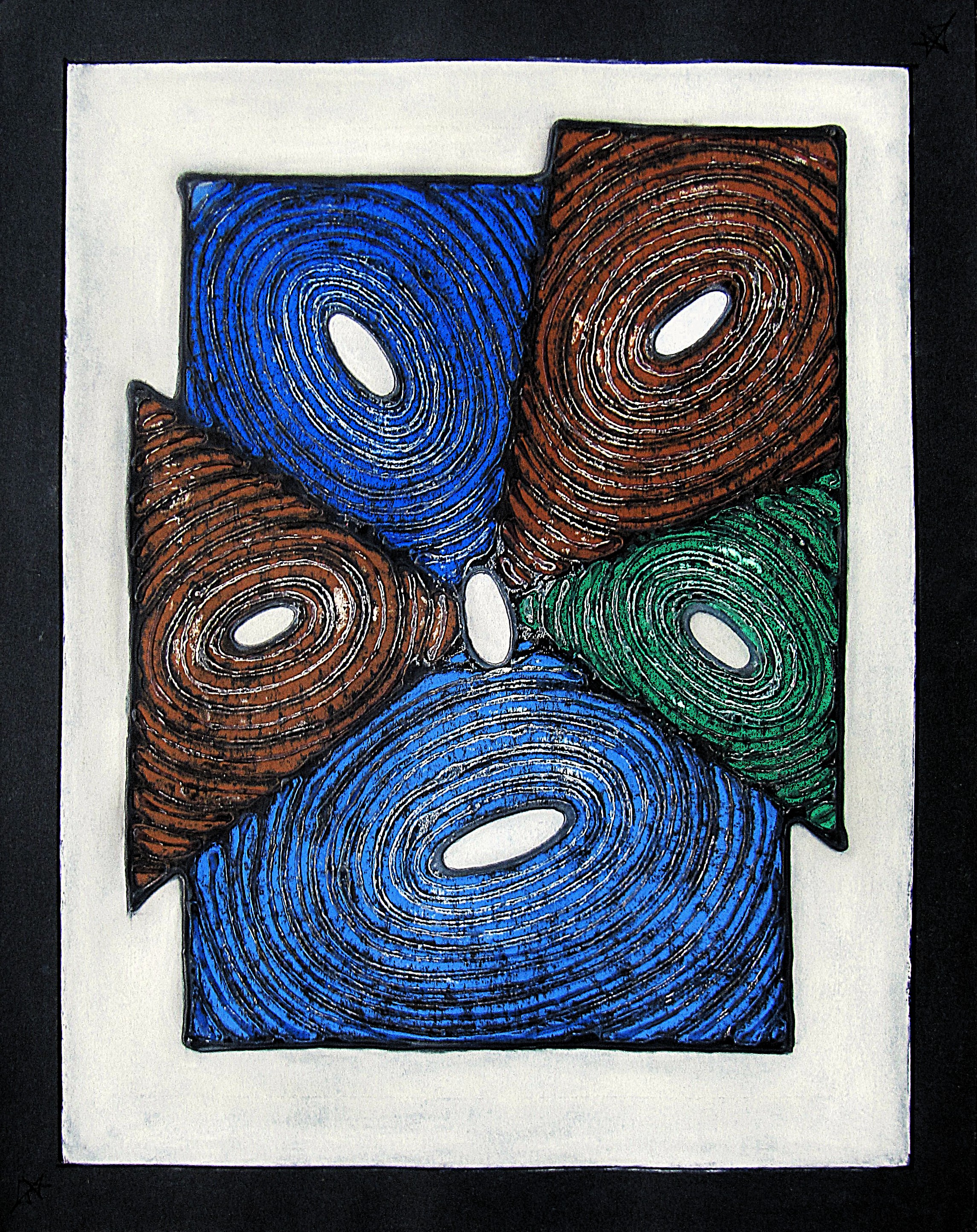 Blue Burst in a Black Diamond (19 x 24, Sharpie, pencil, pastel and glue) | ||