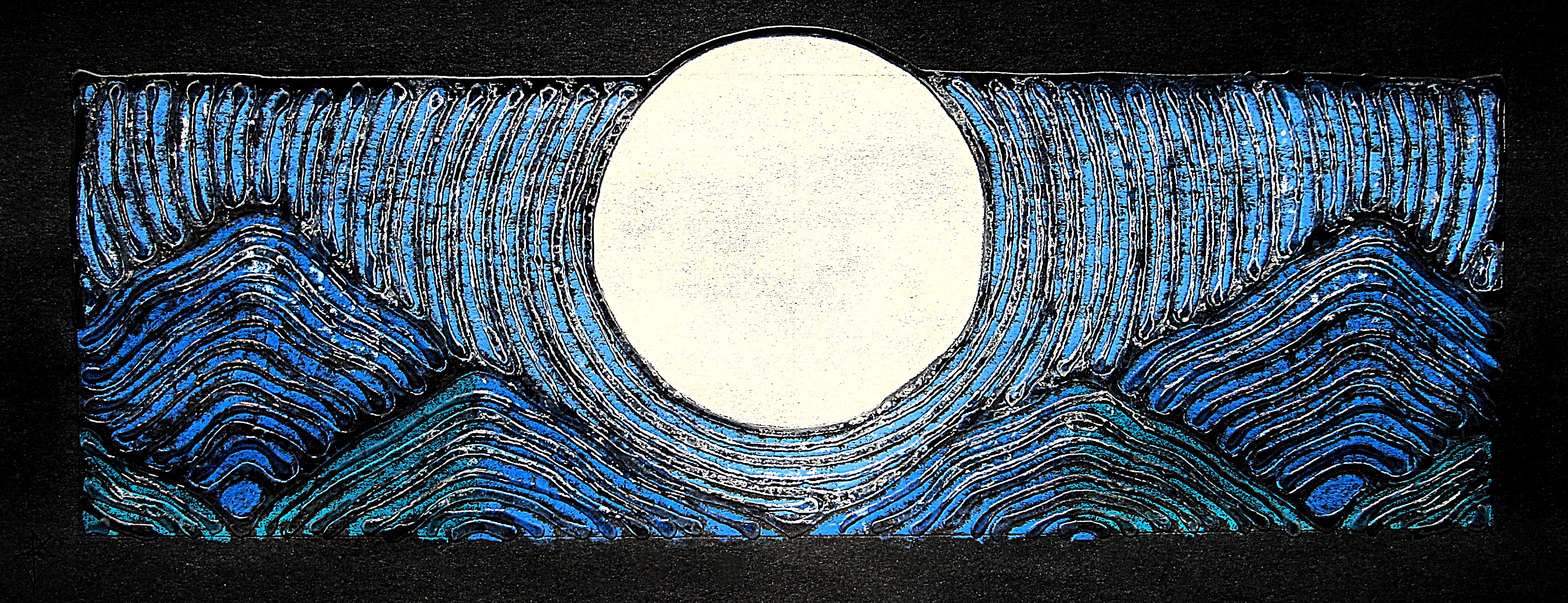Glue Orb Starry Night with Crescent Moon (22 x 28, glue and pastel on black illustration board) | ||
