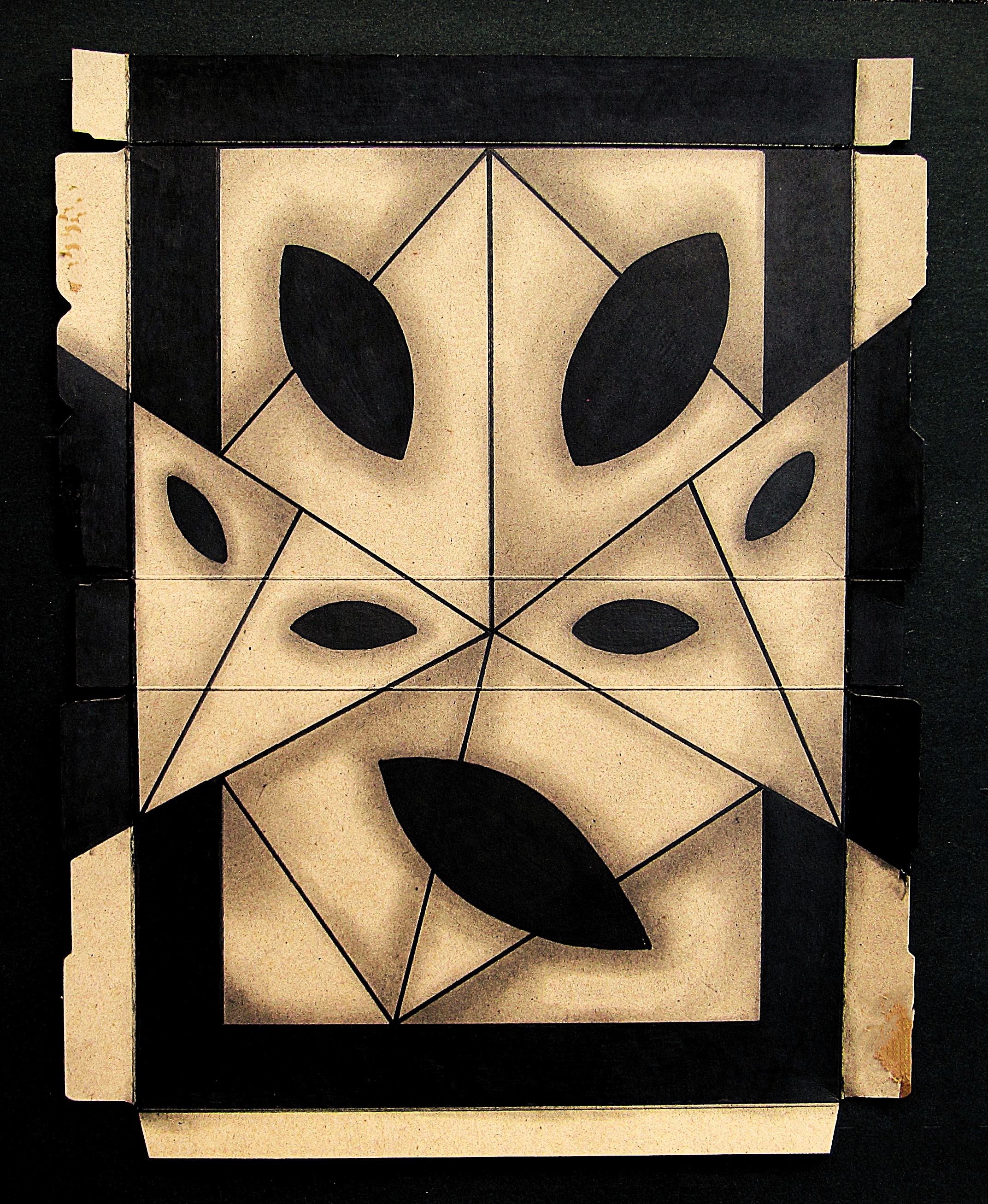 Mask of Triangles (15 1/2 x 20. Sharpie and pencil on a Raisin Bran box) | ||